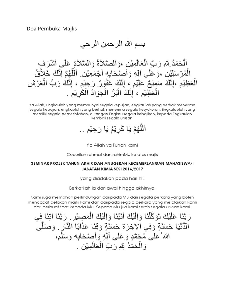 Doa pembukaan majlis slideshare net. Tidak hanya itu saja majelis ilmu yang dibuka dengan doa ini akan mendapatkan kelancaran sampai acara selesai. Bacaan Doa Pembuka Majlis Dalam Rumi بسم الله الرحمن الرحيم.